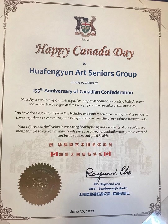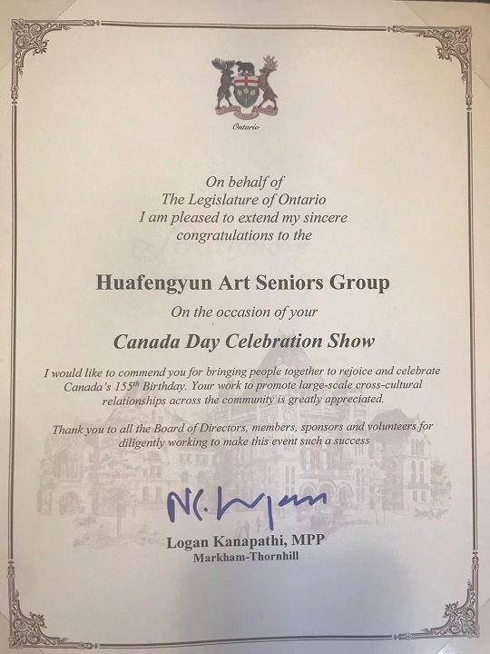The middle-aged and senior members who have participated in the activities of the Hua Feng Yun Art Seniors Group of Canada all said that this is a happy family. The ones that would not have been able to sing before now are able to sing. Our members’ physical and mental health was improved during the participating in the recreational activities.